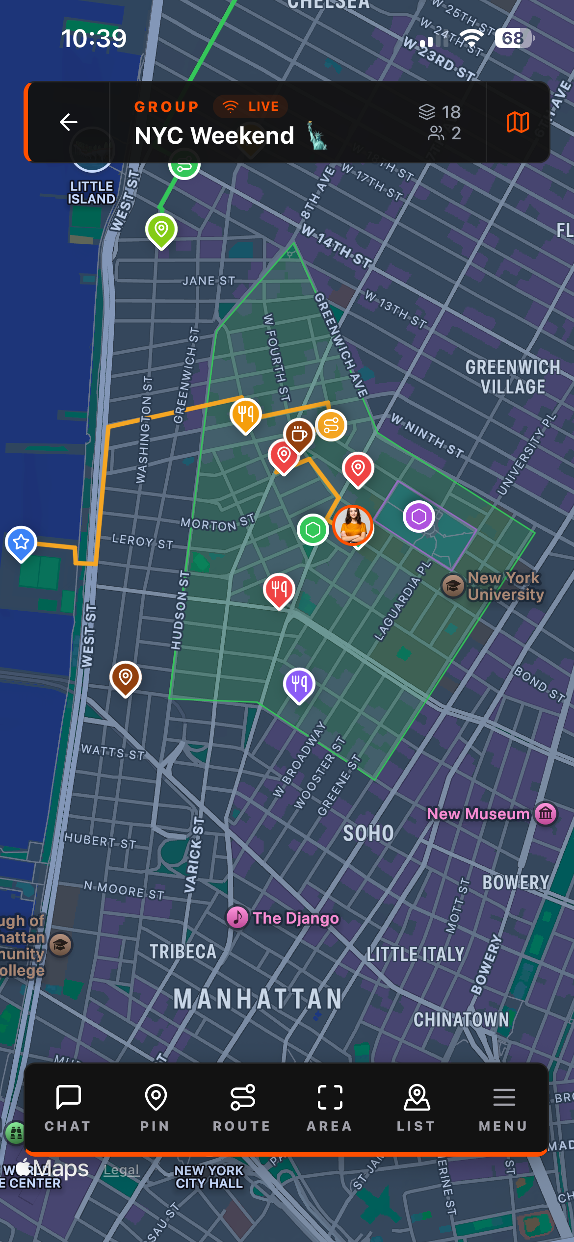 Group travel Shared itinerary as pins, the route drawn, everyone knows where to be. Works great on cloud for a city weekend. No one has to spam the group chat asking where to meet.