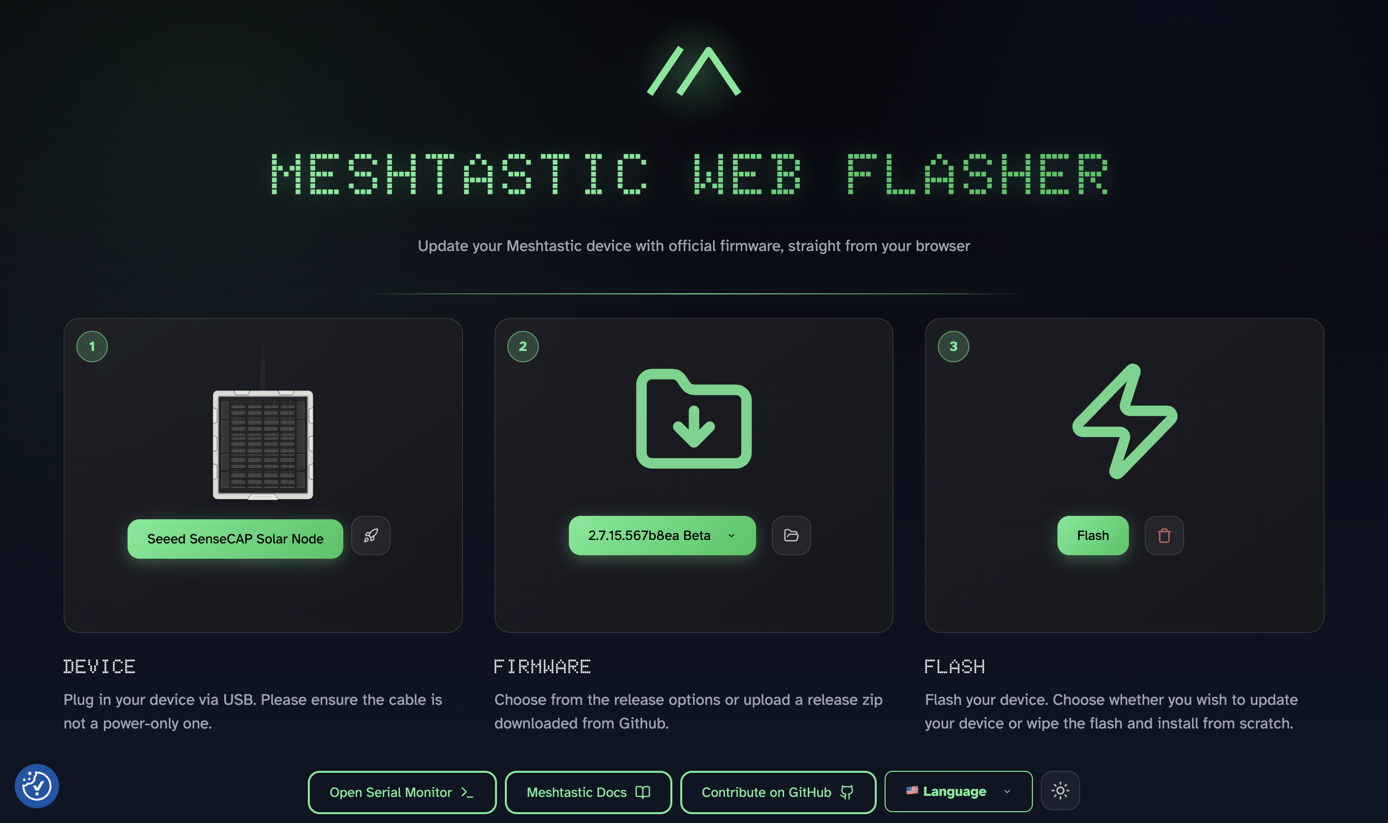 - Go to flasher.meshtastic.org in Chrome or Edge